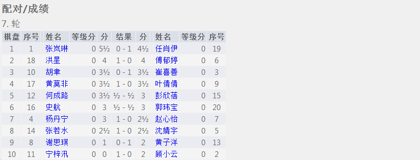 2016年李成智杯女子青年组第7轮配对及名次表--开化赛区