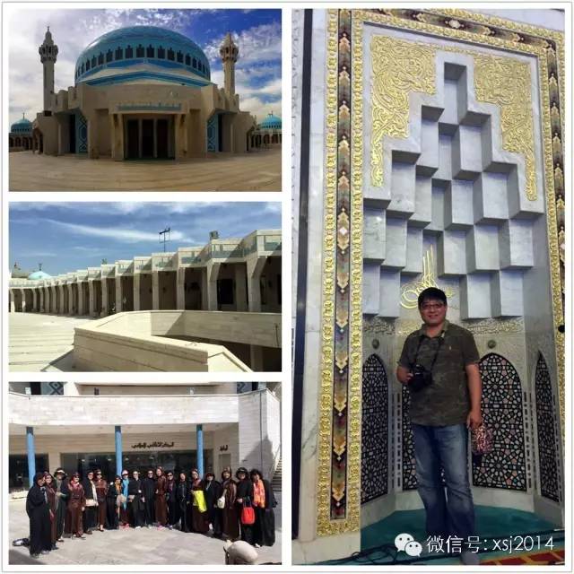 约“色”之行第三天,凌晨4:00,天还没亮,窗外就传来了诵经声,这是清真寺的宣礼塔上的高音喇叭在播放,召集信徒们赶紧聚集。今天的第一个景点就是参观阿卜杜拉国王清真寺(King Abdullah Mosque),清真寺建成于1990年,是安曼最大的清真寺,也是安曼的标志性建筑之一,装饰有华丽的马赛克拼镶图案的蓝色圆屋顶在一片白色建筑中非常醒目,因而也被称为“蓝顶寺”。寺前的一对高塔可以成为旅游者在安曼确定方位的坐标,是安曼唯一公开欢迎非穆斯林游客的清真寺,寺内碑文引用《古兰经》,同时巨大吊灯也有许多古兰经铭文。(礼拜时间不可入内)